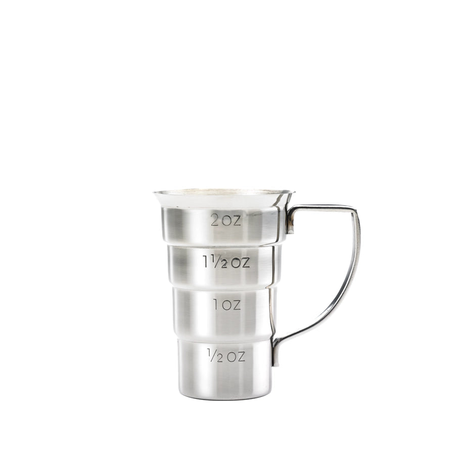 2 oz./60 Ml capacity with external markings on both sides for easy identification; measurements in 1/2 oz./15 Ml increments, barware essential: flared top edge and handle facilitate smooth and easy pouring; precise and consistent measurements for exact pours to help you craft the perfect cocktail.