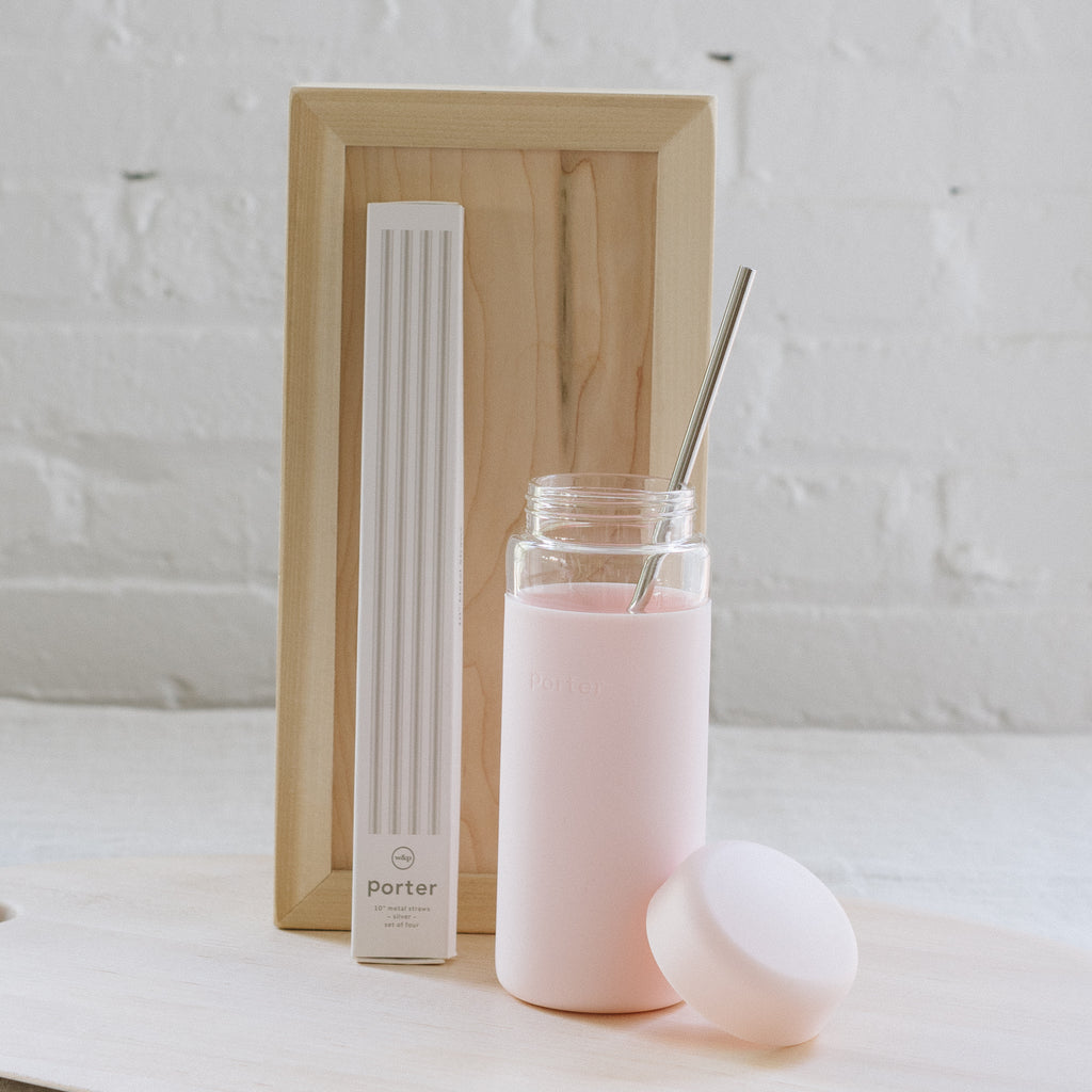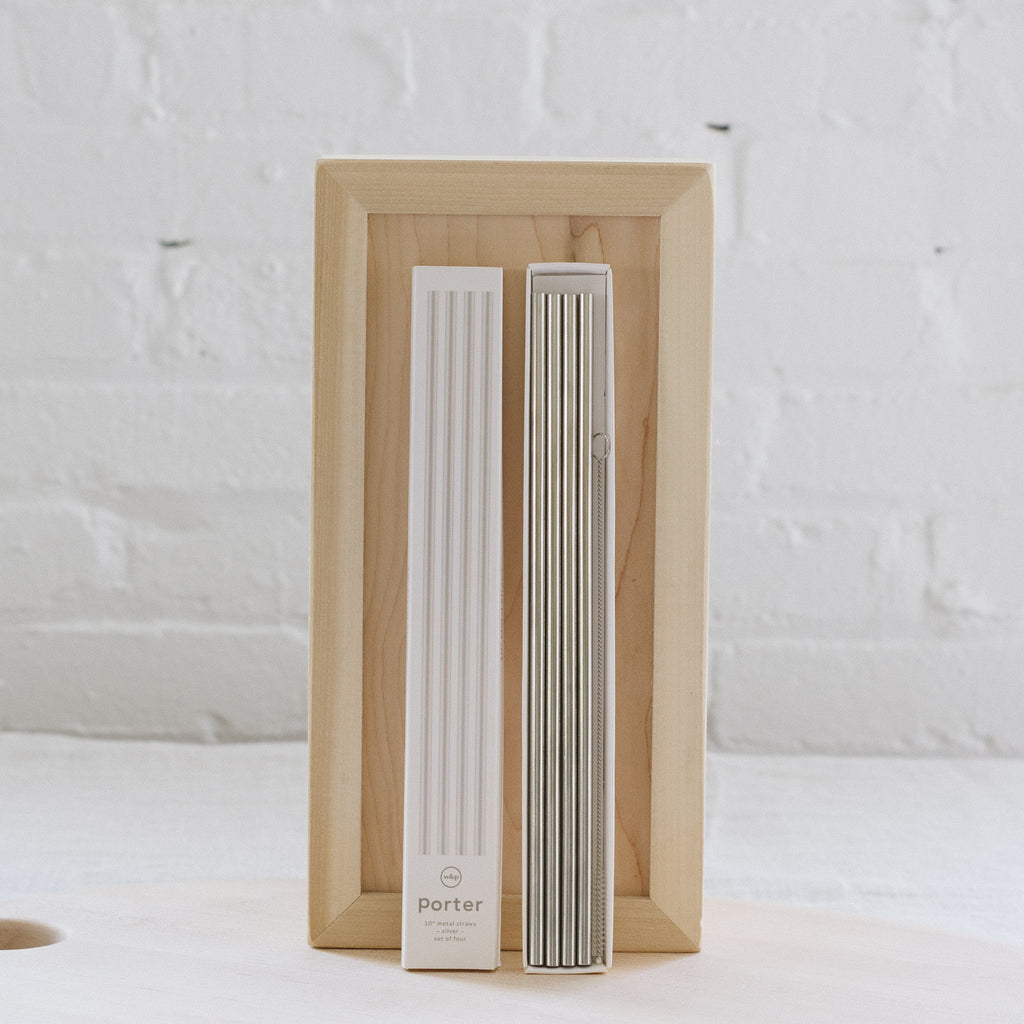 It's time to get on board. Plated stainless steel, rustproof straws are a convenient, eco-friendly alternative to single-use plastics. This set of four is perfect for all your cool beverage needs. Keep them clean with the included skinny brush.