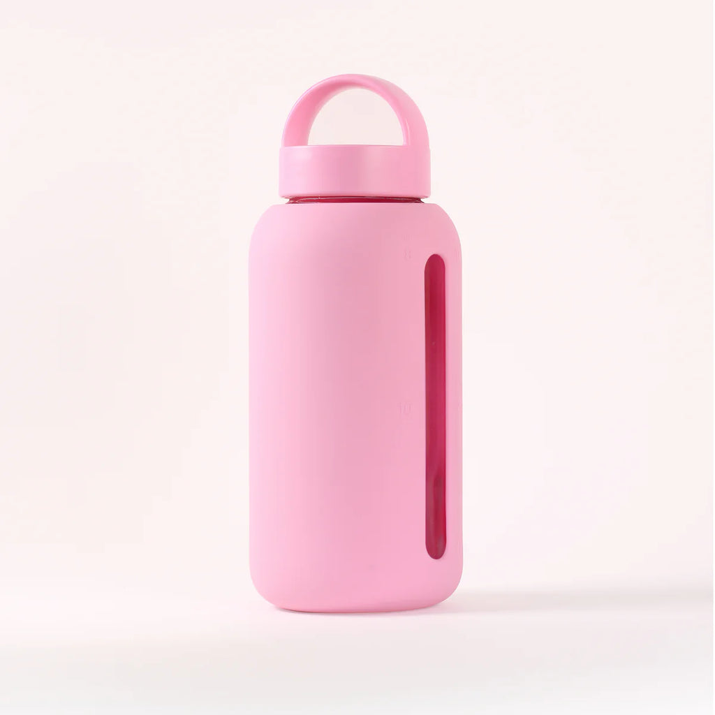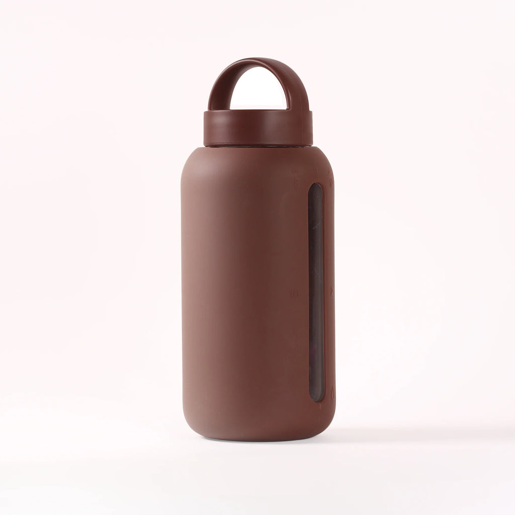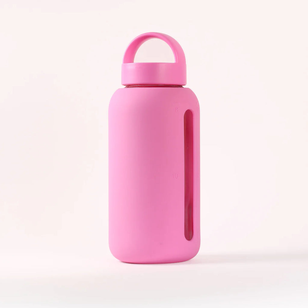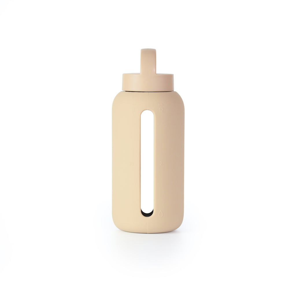 This sleek glass water bottle empowers you to be more mindful of the water you drink every day. Simple to-follow AM/PM time markings on the bottle sleeve help you see your hydration progress.